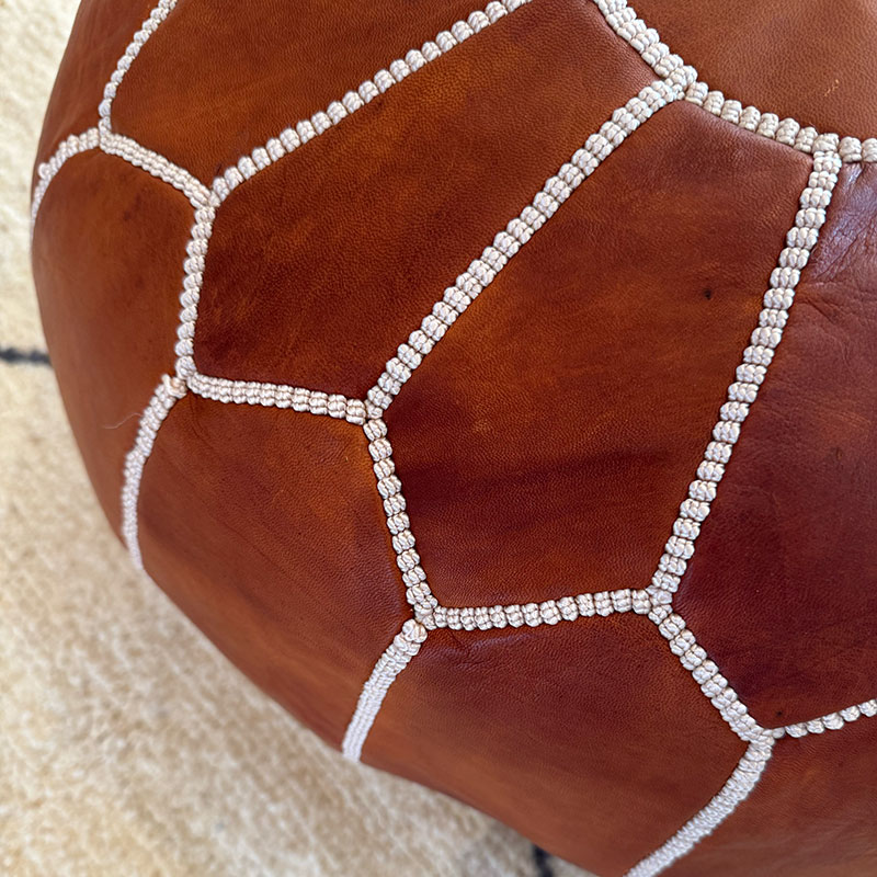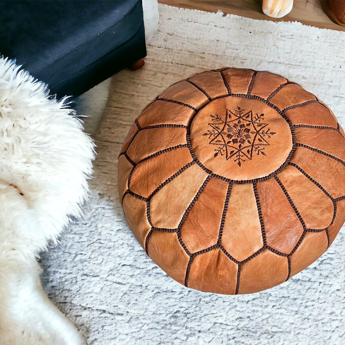 Authentic Moroccan Leather Pouf Ottoman – Boho Footstool