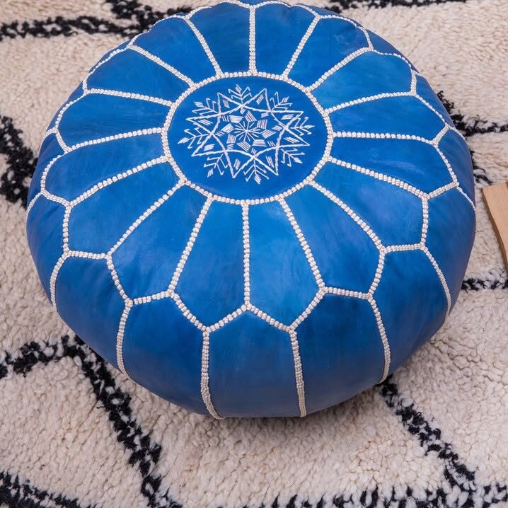 Blue Moroccan Pouf – leather pouf – Berber pouf – ottoman pouf – moroccan leather pouf