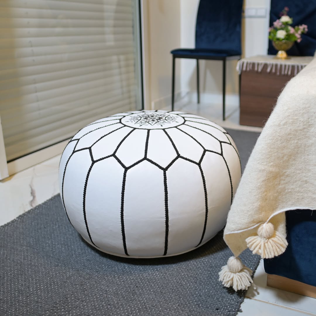 Premium Handcrafted Leather Pouf Ottoman – Boho Footstool