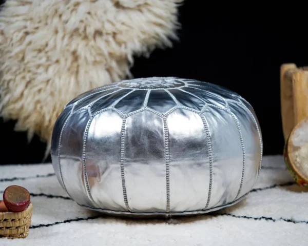 Authentic Moroccan Leather Pouf Ottoman – Boho Footstool