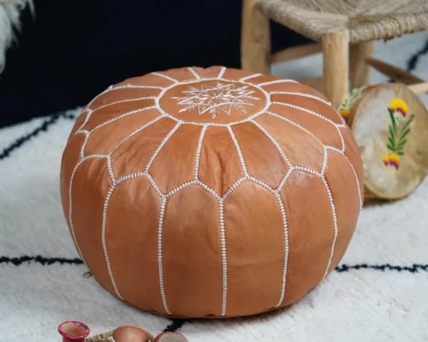 Authentic Moroccan Leather Pouf Ottoman – Boho Footstool