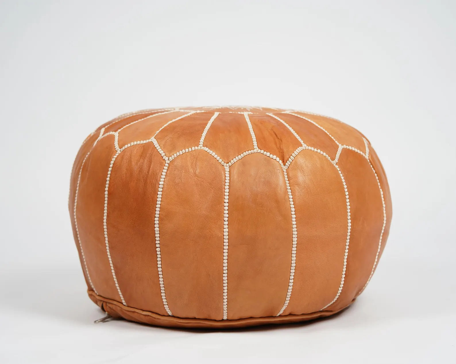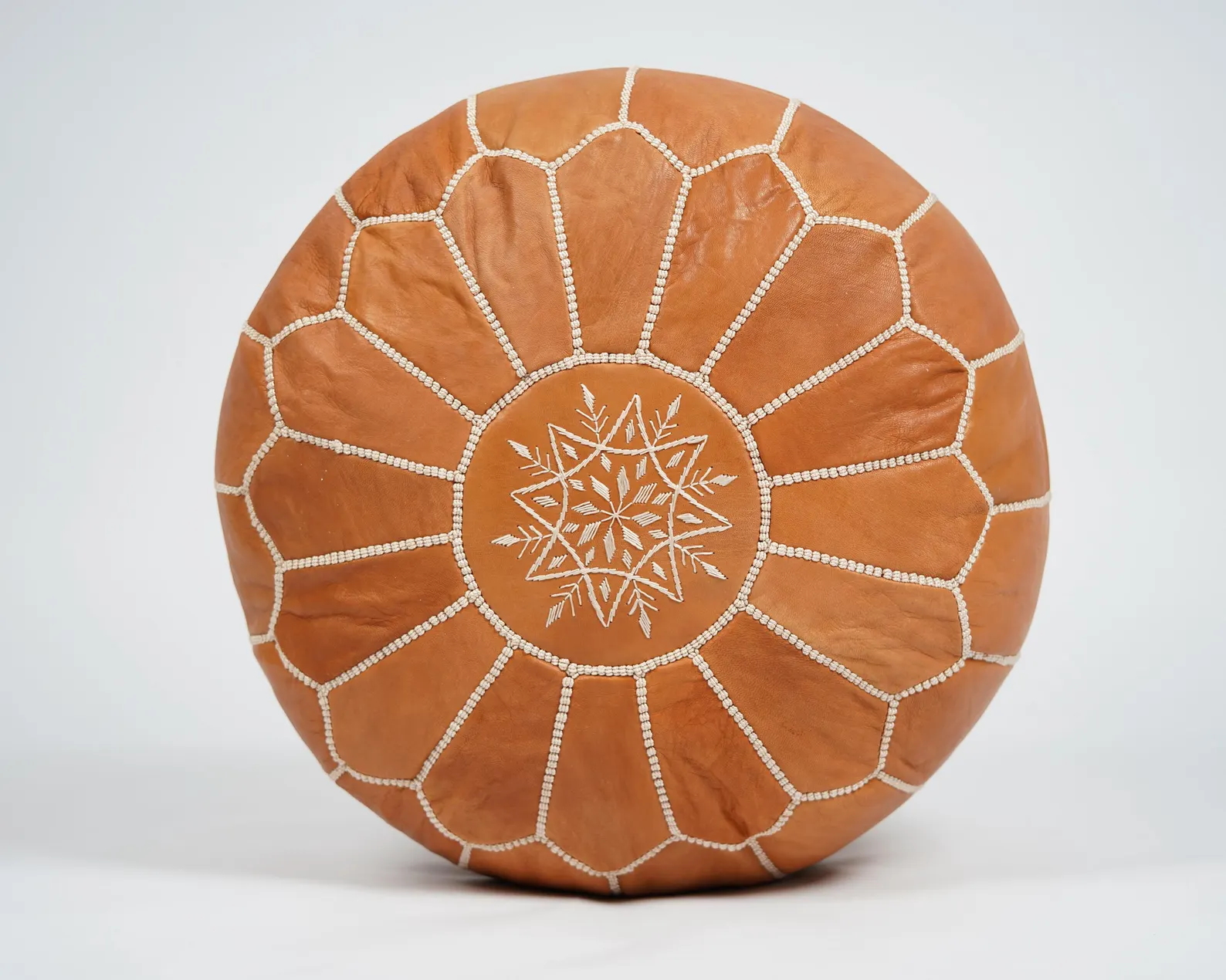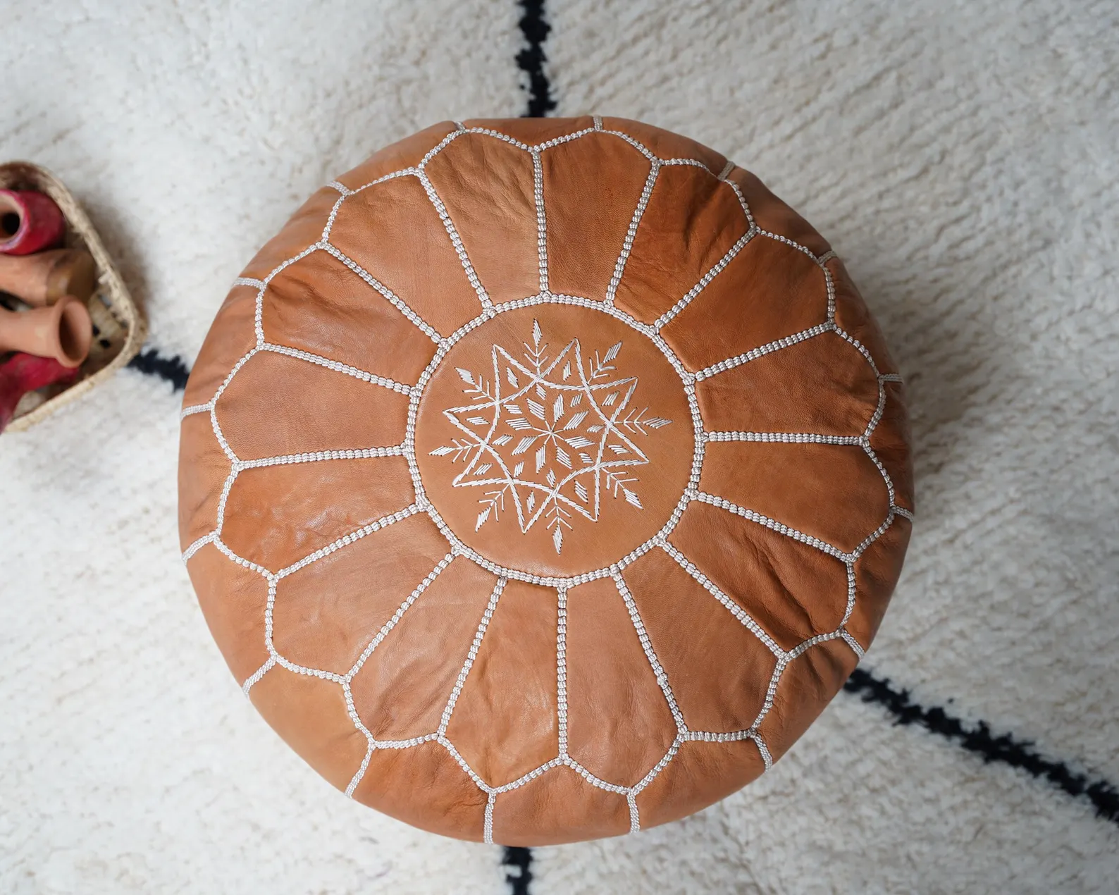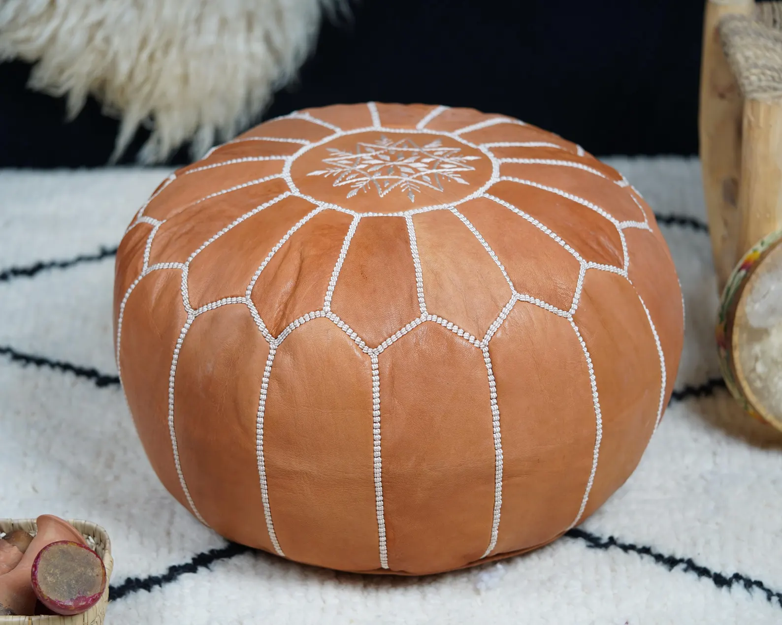 Authentic Moroccan Leather Pouf Ottoman – Boho Footstool