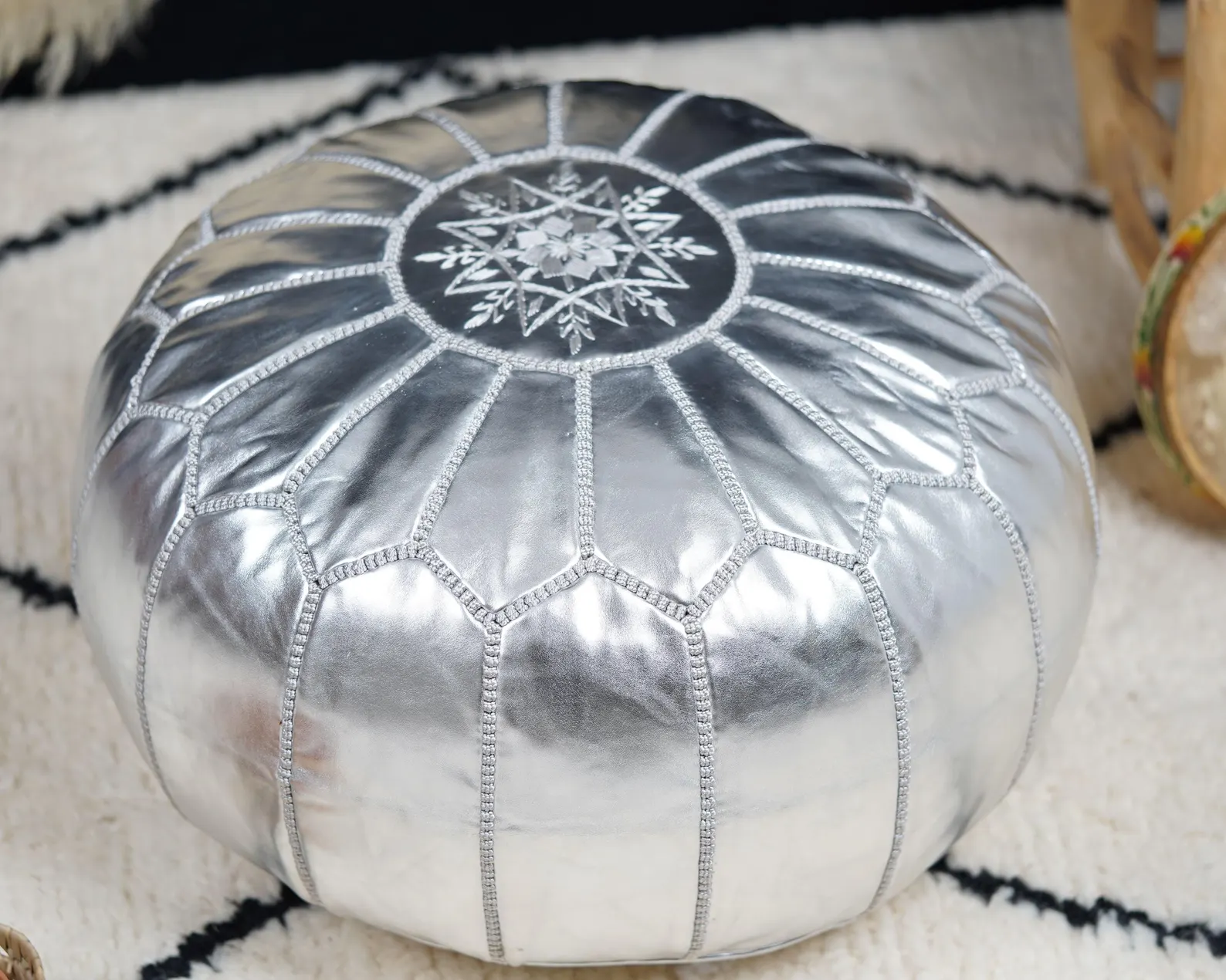Authentic Moroccan Leather Pouf Ottoman – Boho Footstool