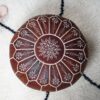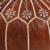 Brown Moroccan Leather Pouf Ottoman – Handmade Embroidered Footstool