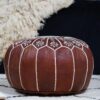 Bring warmth and authentic craftsmanship into your home with this brown Moroccan leather pouf ottoman, handmade by skilled artisans in Morocco using traditional techniques.