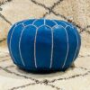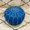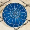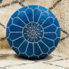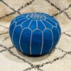 Handmade Blue Moroccan Leather Pouf – Authentic Ottoman | Boho Decor, Hand-Stitched Round Footstool