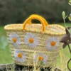 Handmade Straw Basket Bag with Floral Embroidery Handmade Straw Basket Bag with Floral Embroidery