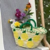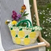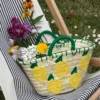 Handmade Straw Basket Bag with Lemon Embroidery
