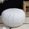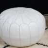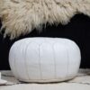 Authentic Moroccan Leather Pouf – White Handmade Ottoman Footstool
